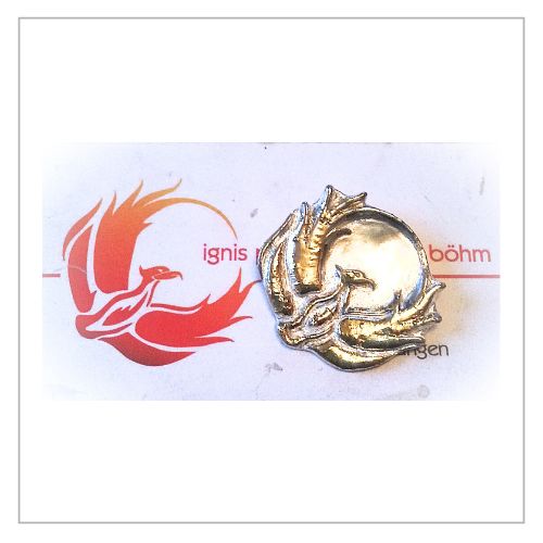 Ich habe Evolving You auf einem Selbständigen-Meeting kennen gelernt und mich eigentlich erst mal in die Armbänder verguckt, die das Firmen- oder Lebensmotto in geschwungenen Buchstaben zu einem Reif formen. Allerdings habe ich kein Lebensmotto in diesem Sinne, so dass das nicht so richtig in Frage kam. Gisela zeigte mir dann in einem Prospekt ihre Arbeiten, bei denen sie Firmenlogos in Schmuckstücke verwandelt hatte. Die Entscheidung fiel sofort: Mein Firmen-Phönix ist ein Symbol, das mich schon mein Leben lang in der ein oder anderen Form begleitet und die Umsetzungen anderer Logos waren so schön, dass ich meinen Phönix auf jeden Fall in Gold und Silber haben wollte.