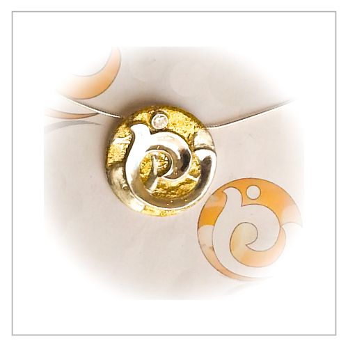 Sie fertigte meinen Anhänger zunächst aus reinem Feinsilber. Er sah auch schon sehr schön aus, fühlte sich aber irgendwie noch nicht so ganz stimmig für mich an, was einfach daran lag, dass ich Goldschmuck bevorzuge. Gisela spürte sofort, dass ich noch nicht so 100%ig glücklich war und machte den Vorschlag den Anhänger teilweise zu vergolden, sodass dieser auch meinem Logo noch viel detailgetreuer entsprechen würde. Und genau das war es!