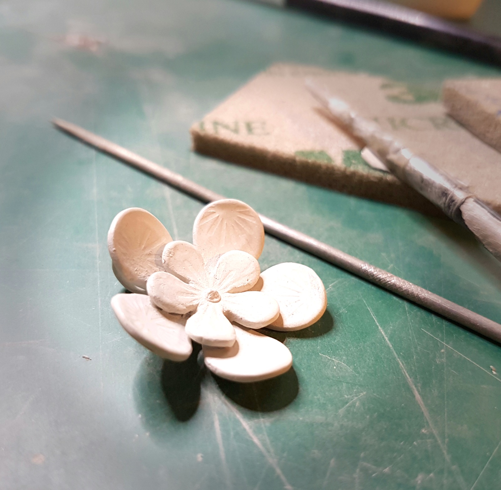 Gisela weckte dann sehr schnell meine Neugierde mit ihrer Interpretation zur Parallelität von „Schmuck machen“ zum „echten Leben“. Auch das für mich völlig neue Material und die dadurch gegebenen Möglichkeiten übertrafen meine Erwartungen.