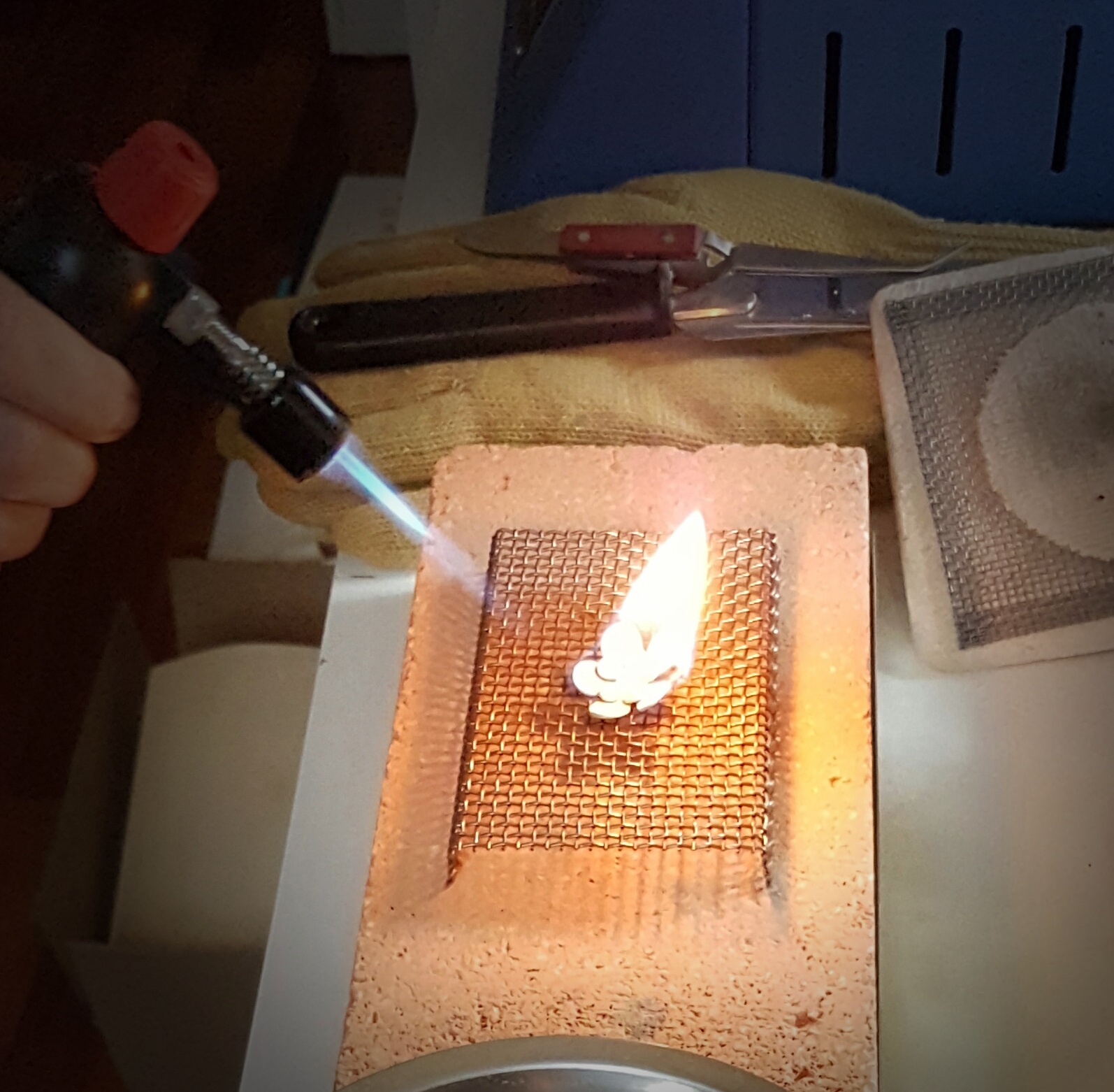 Als am Ende des Kreativ- und Handwerksprozesses das eigene Schmuckstück „am offenen Feuer“ gebrannt wurde, war auch mein „Männer-Herz“ ganz Feuer und Flamme.